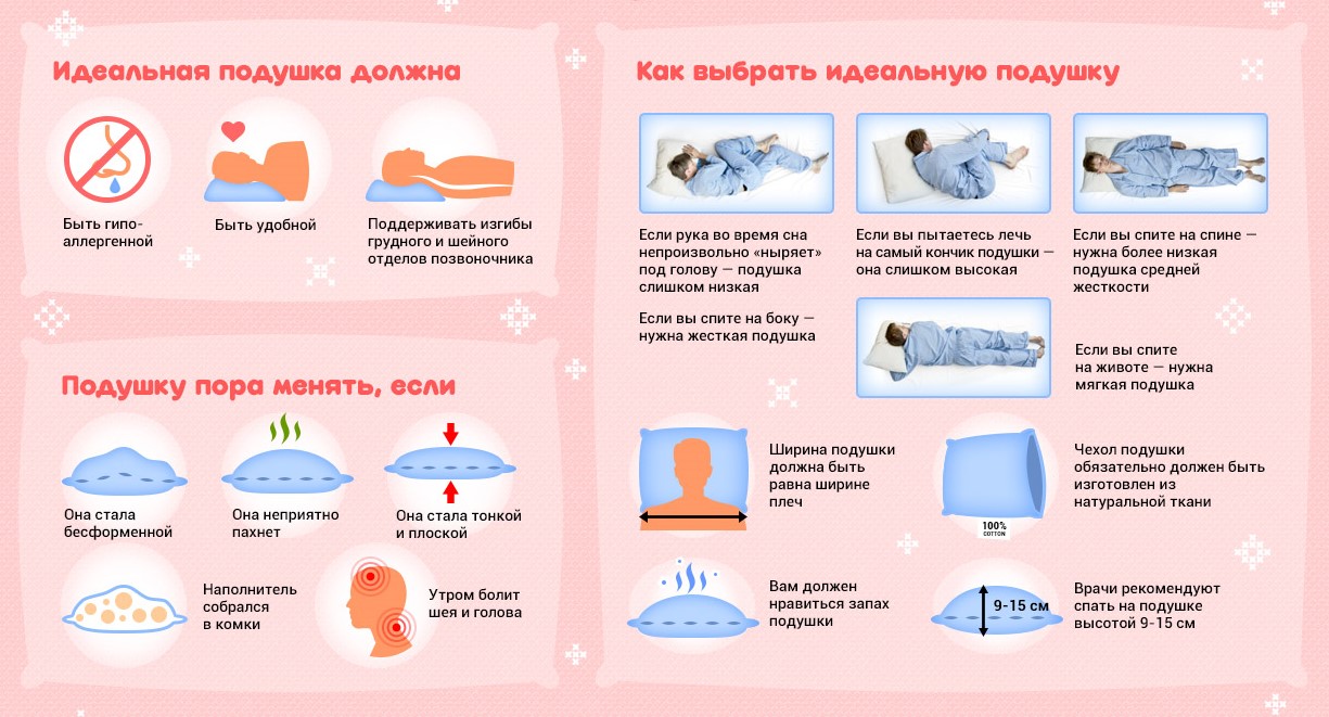 - Чем шире ваши плечи, тем более высокая подушка нужна вам для хорошего сна.