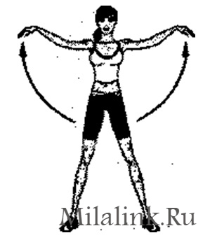 Встаньте ровно. Опуститесь в неглубокий присед. Руки согните перед собой, удерживая кисти на уровне живота. На вдохе поднимите руки в стороны (словно крылья, кисти расслаблены). На выдохе руки опустите вдоль туловища, ладони параллельны полу. Дыхание медленное и глубокое. Выполните 5 повторов.